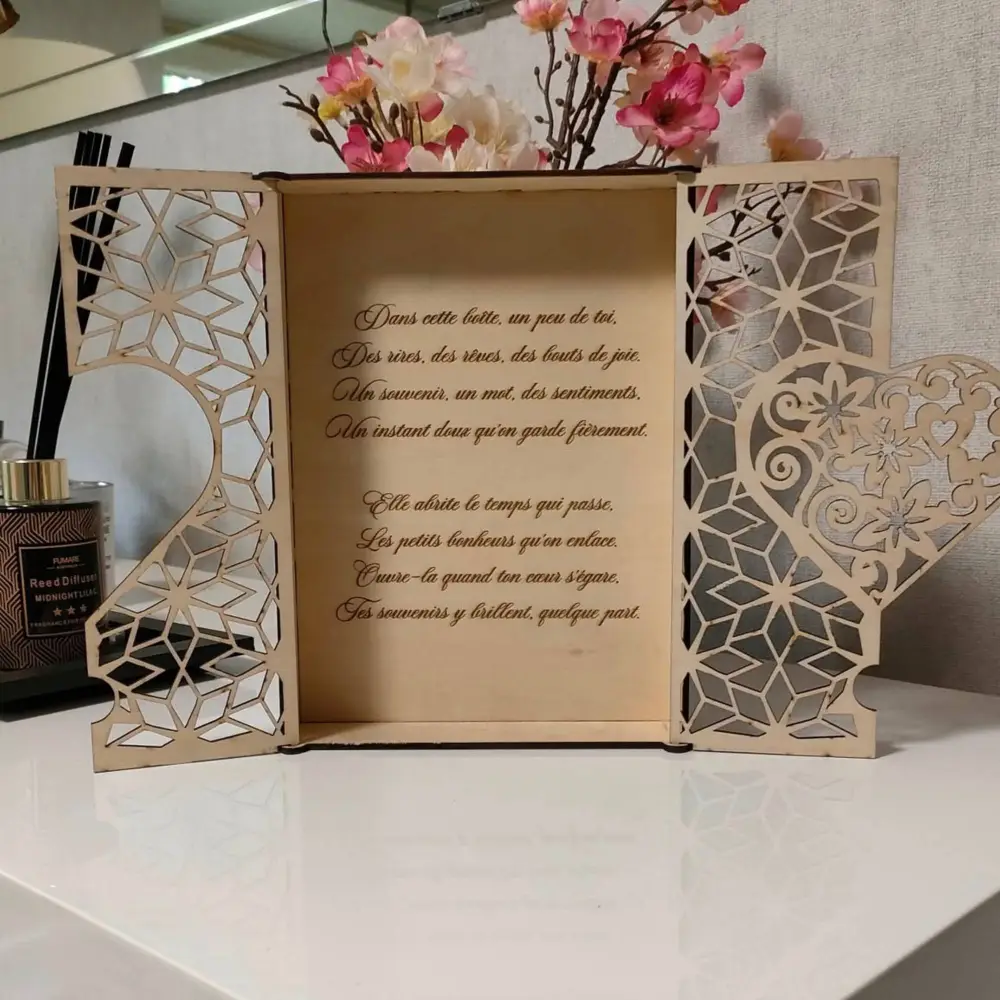 Coffret » Dentelle de bois » – boîte personnalisée pour la Saint Valentin, poème inclus –