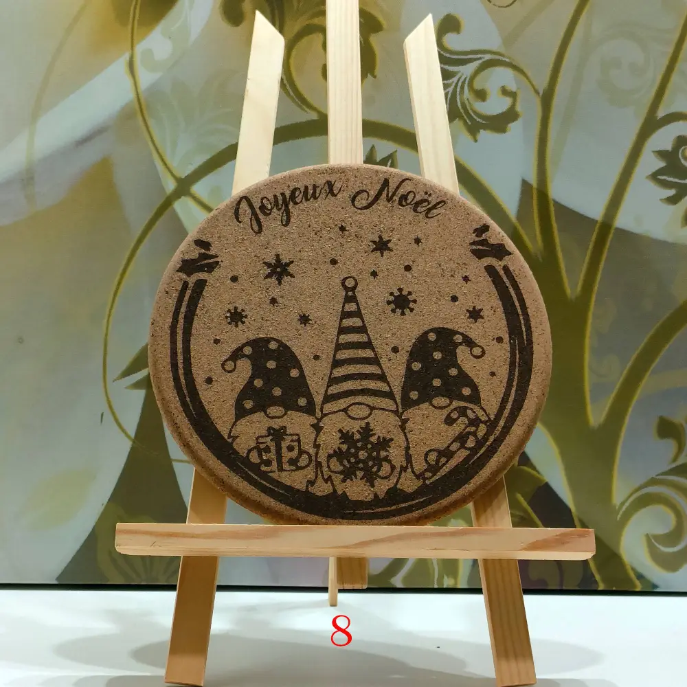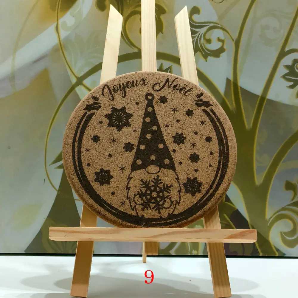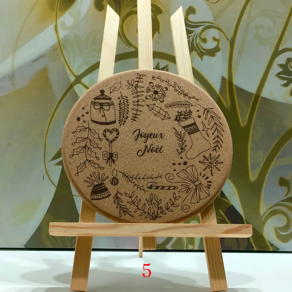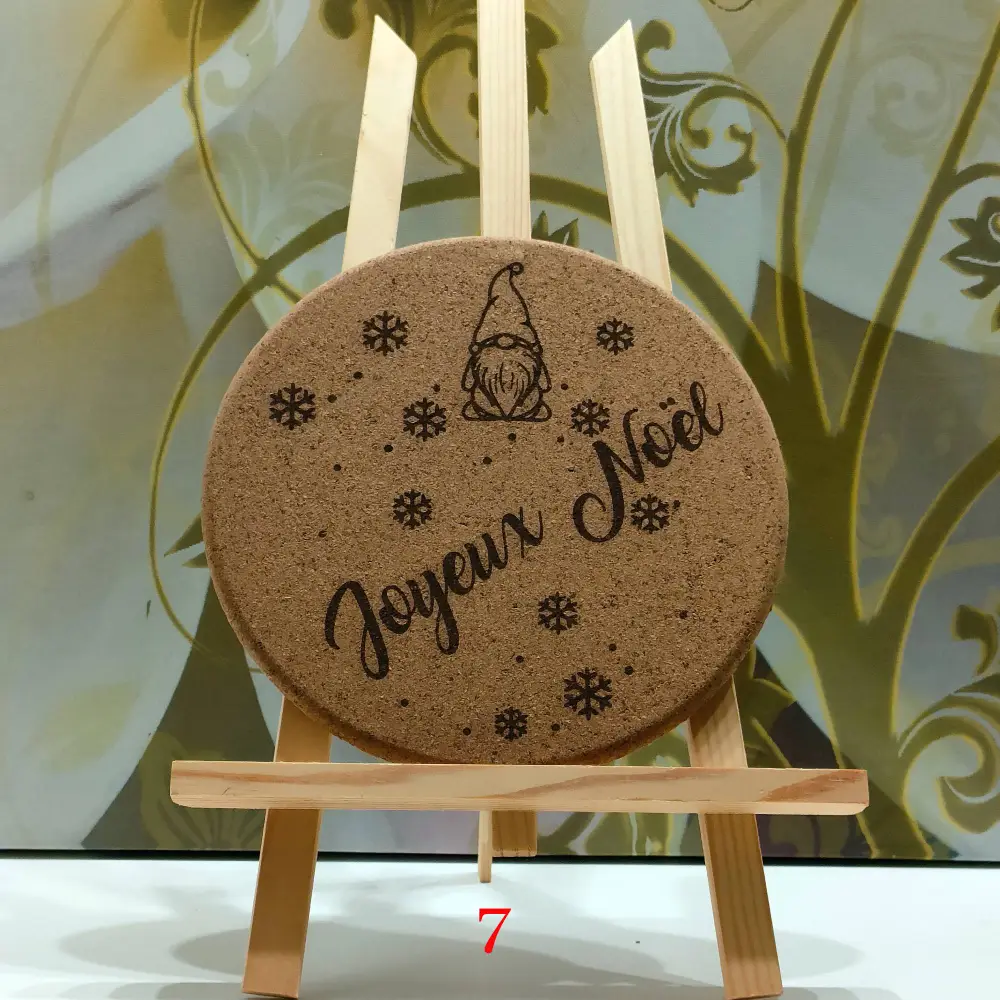 Dessous de plat en liège gravé – Collection Noël (12 modèles au choix)