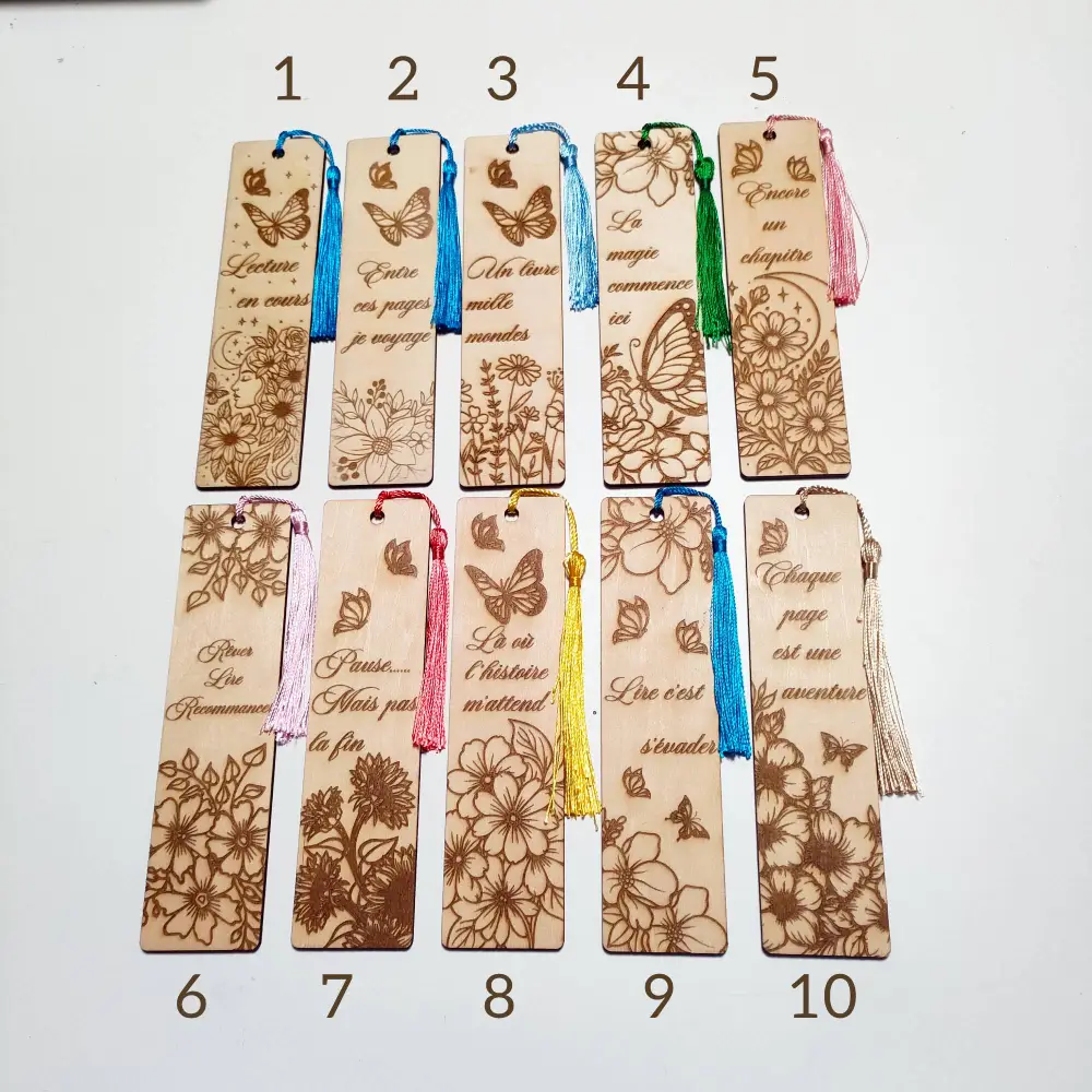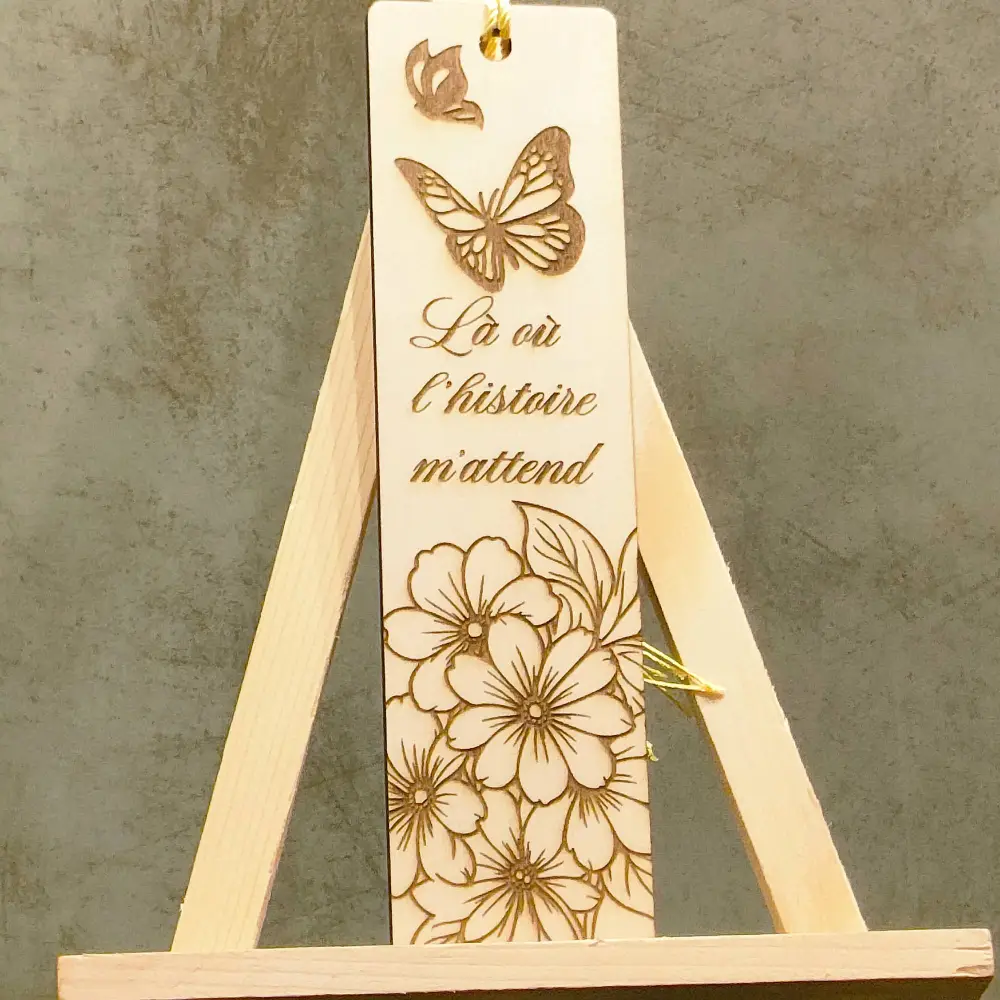 Ajoutez une touche de poésie à votre lecture avec ces marque-pages en bois gravés au laser de la collection Pages Fleuries.
