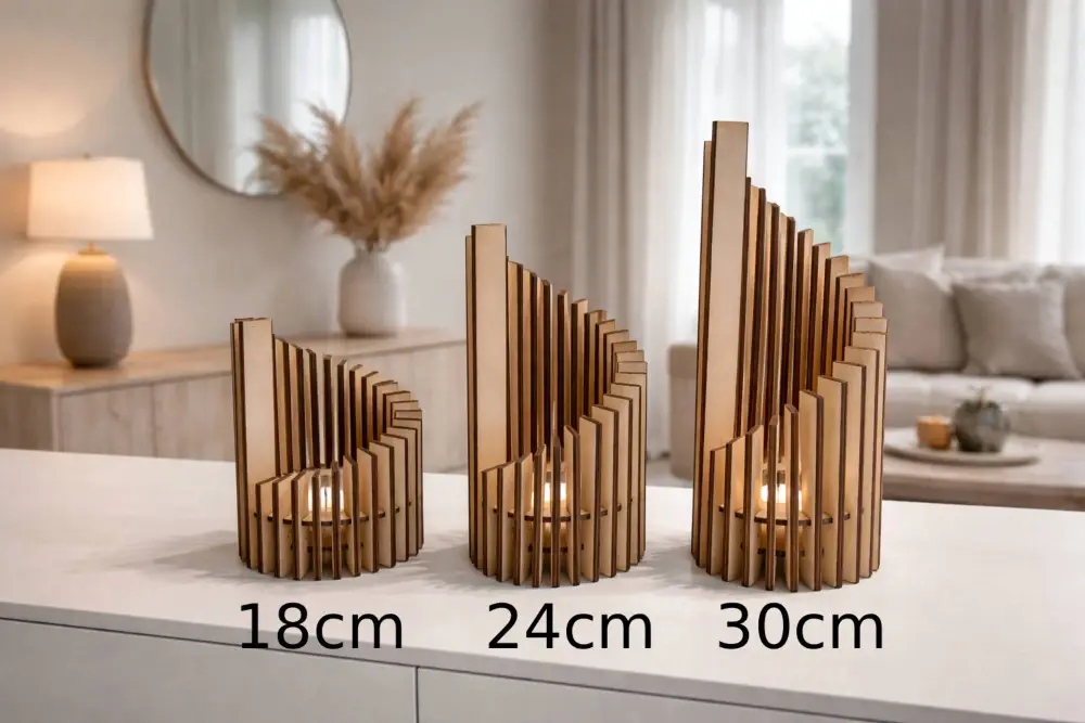 Photophore en bois design moderne – Lampe déco artisanale à monter soi-même – 3 tailles – Ambiance chaleureuse