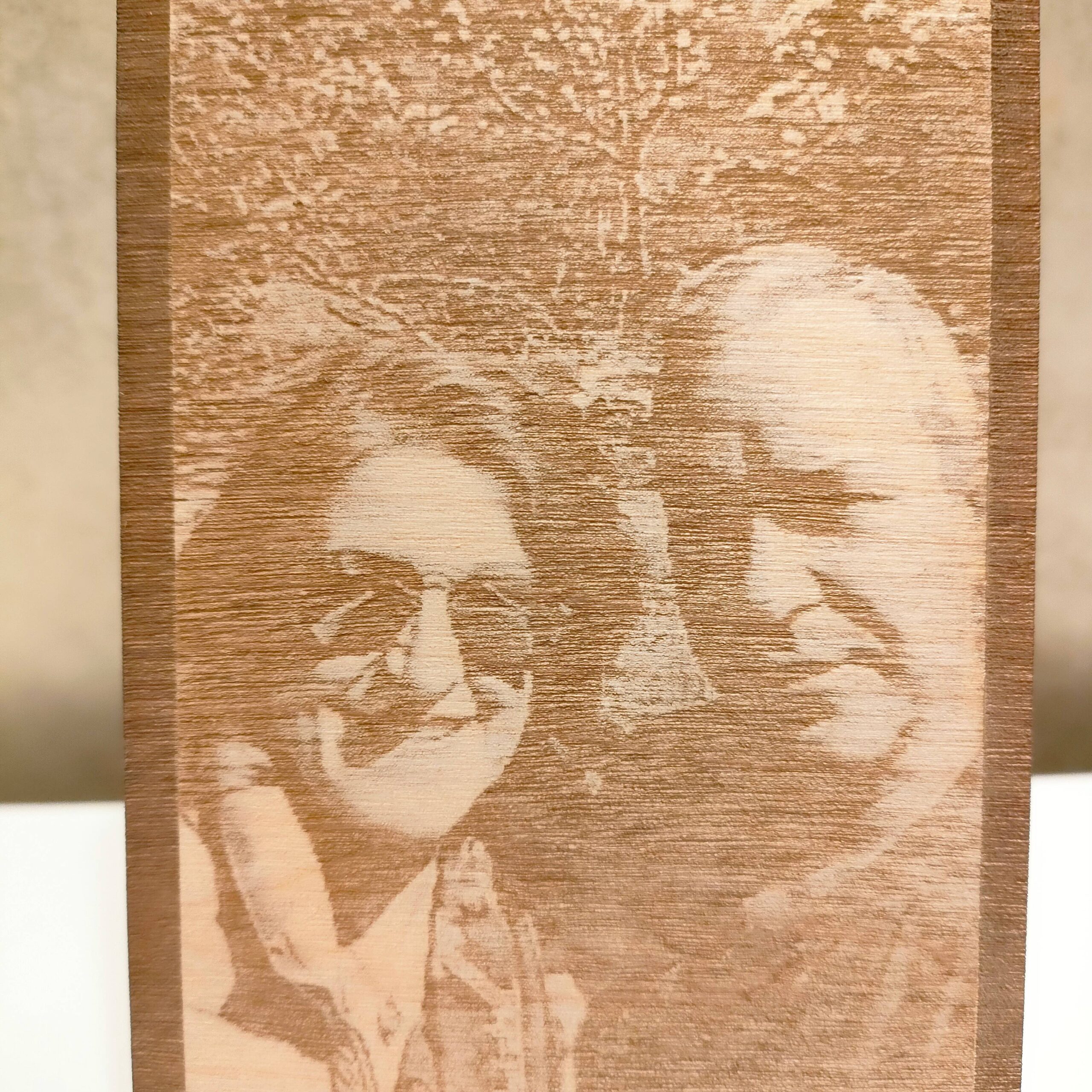 La plaque en bois est gravée avec la photo de votre choix ou tout autre motif, texte, logo etc…